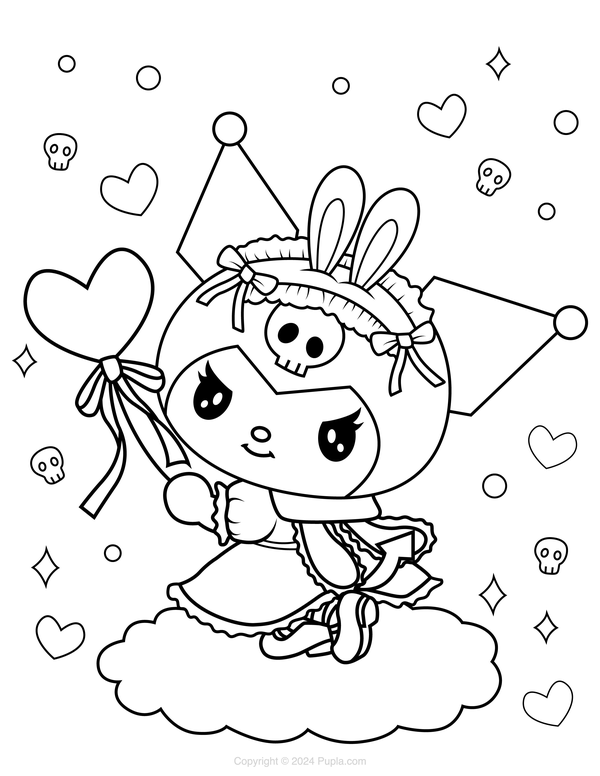 Drucken, herunterladen oder teilen Sie dieses Kuromi hält ein Herz Ausmalbild kostenlos. Werfen Sie auch einen Blick auf unsere anderen 23 Ausmalbilder in Kuromi!